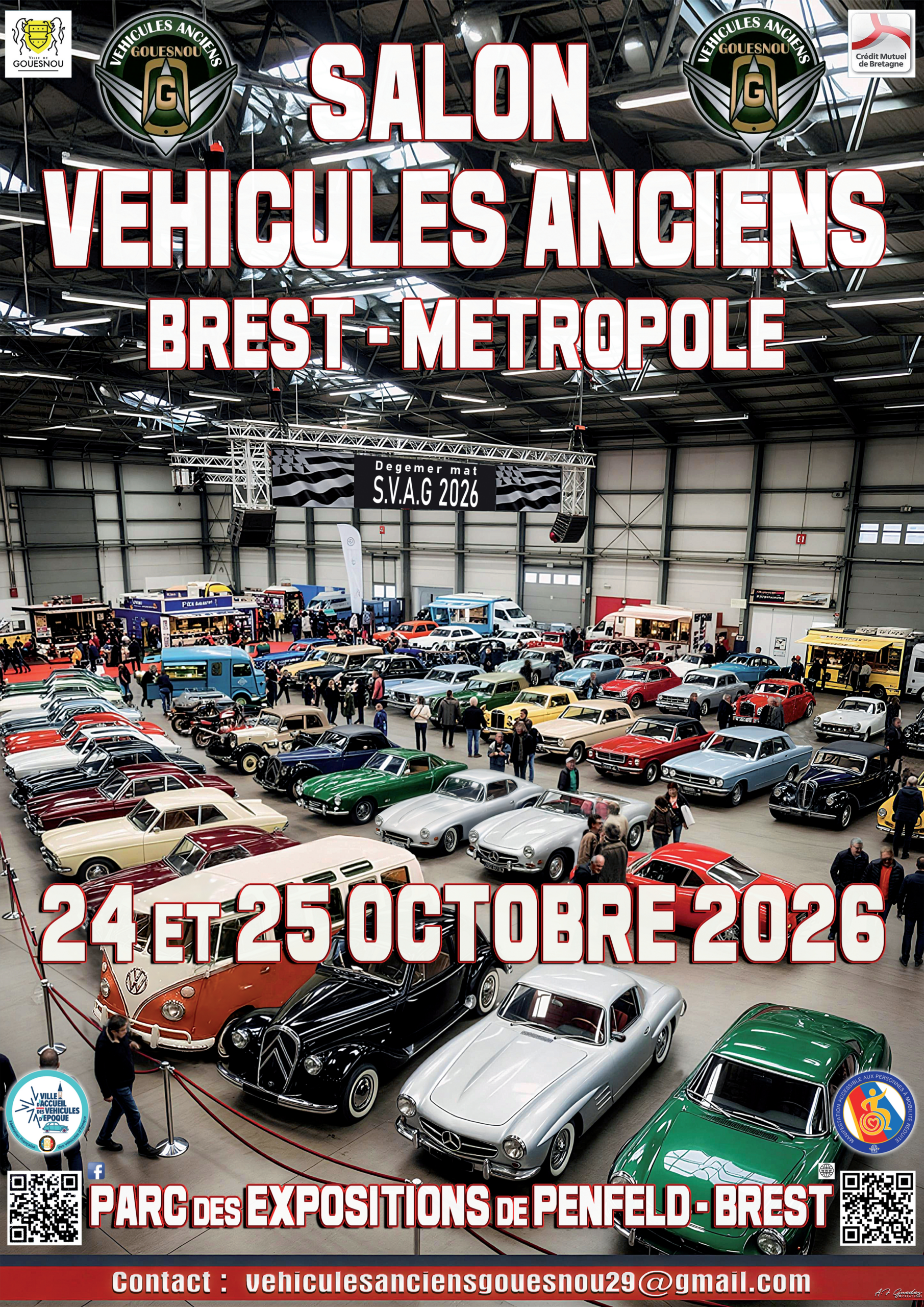 Salon Véhicules Anciens Gouesnou au Parc des Expositions de Penfeld à Brest les 24 et 25 octobre 2026. Stands clubs voitures anciennes Youngtimer’s et américaines locaux, régionaux et nationaux Bourse d’échange Stands exposants vintage, brocante garage Concerts Exposition poids lourds vintage et véhicules militaires Show pin up Tombola Zone Artistes avec Stand bandes dessinées, illustrateurs, […]